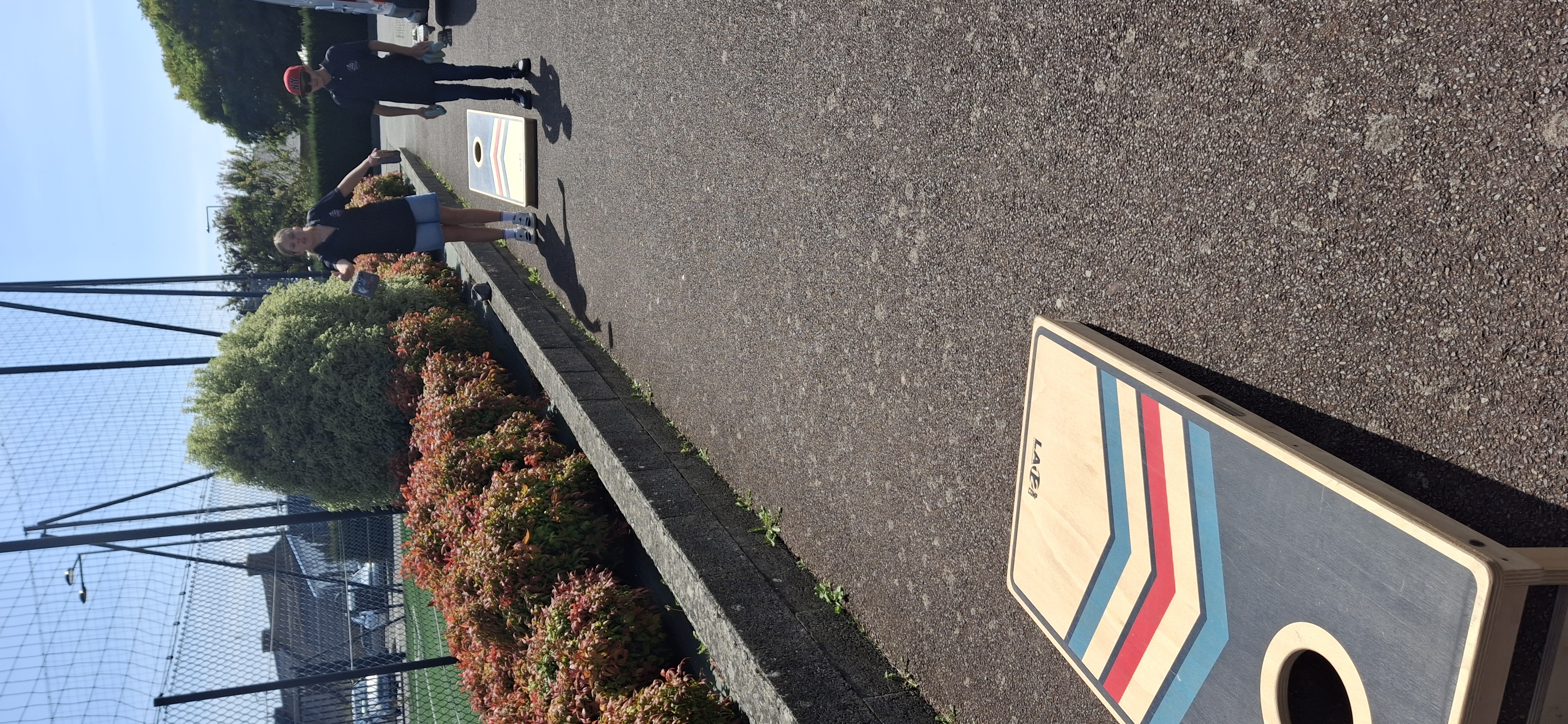 Le cornhole est un sport de précision où les joueurs lancent des sacs remplis de granulés vers une planche inclinée percée d’un trou. L’objectif : marquer des points en faisant atterrir les sacs sur la planche (1 point) ou directement dans le trou (3 points). Simple à comprendre, mais passionnant à maîtriser !